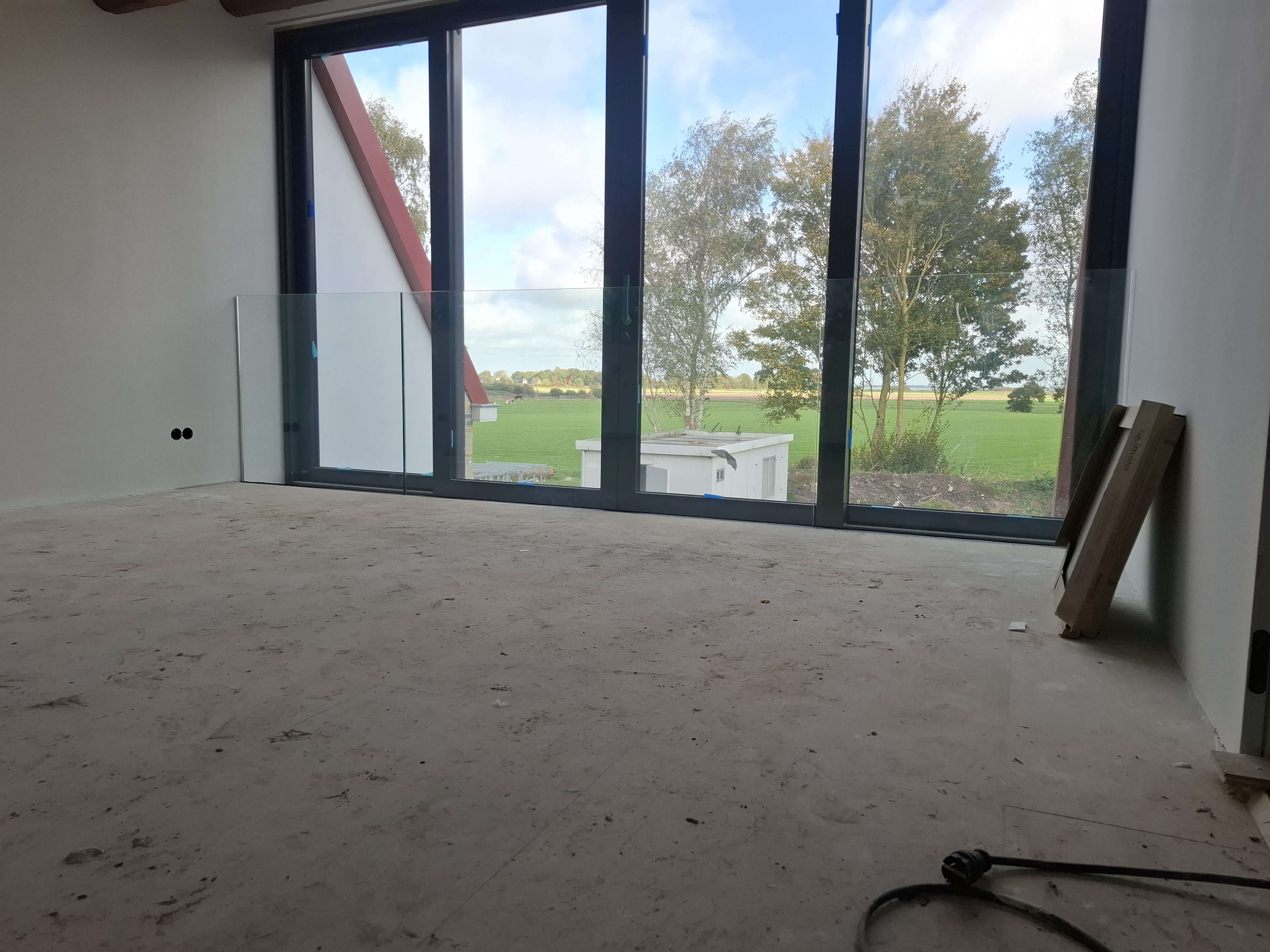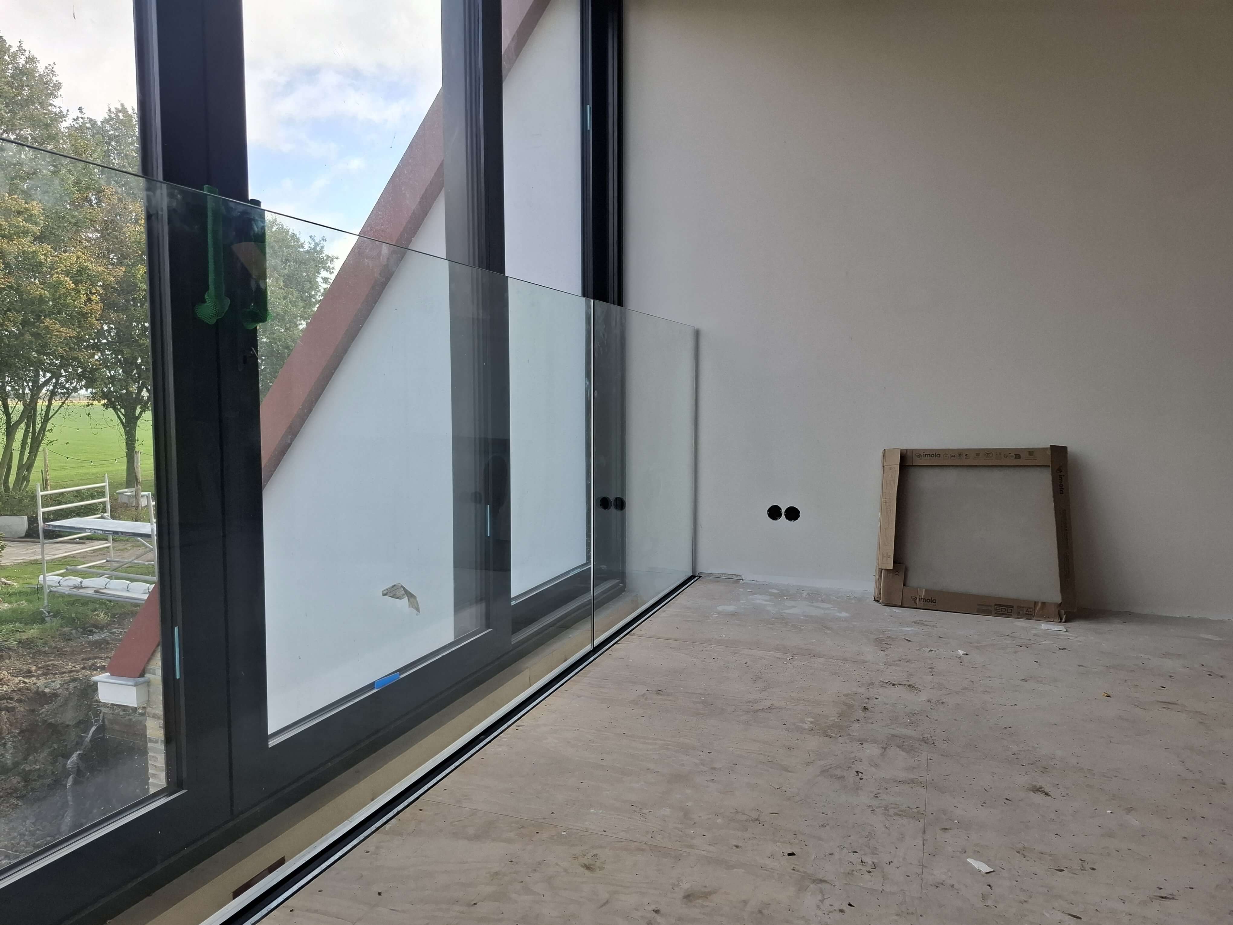 Op deze locatie mochten wij deze verdiepingsvloer voorzien van een glazen balustrade. Het 'Y' profiel is volledig weggewerkt d.m.v. een koof. Het glas is uitgevoerd in 88.4 blank gelaagd- gehard.