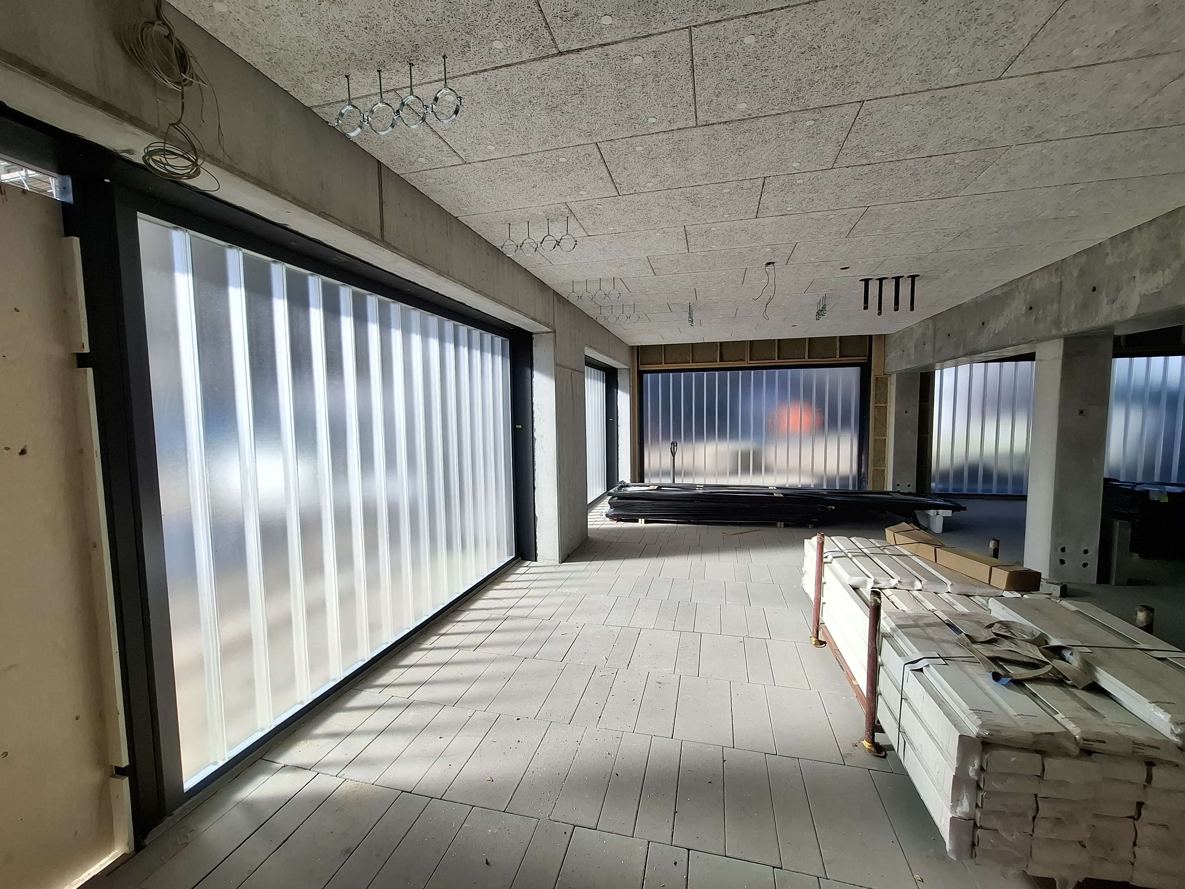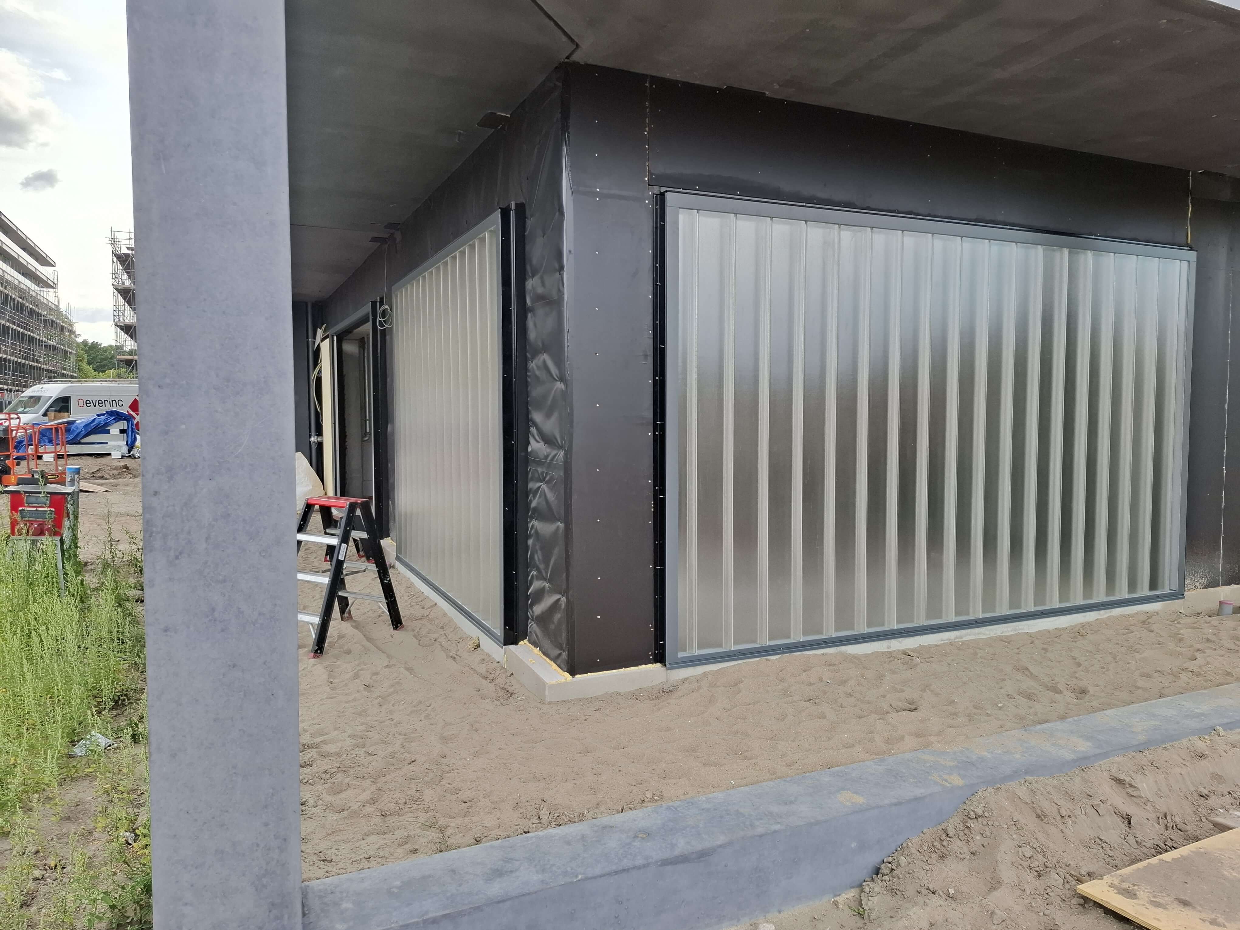 Deze fietsenstallingen mochten wij voorzien van Profilit beglazing. De aluminium profielen zijn geisoleerd en op kleur uitgevoerd. Het glas is uitgevoerd in K22/60/7 opthic white en is gehard incl. heat soak.